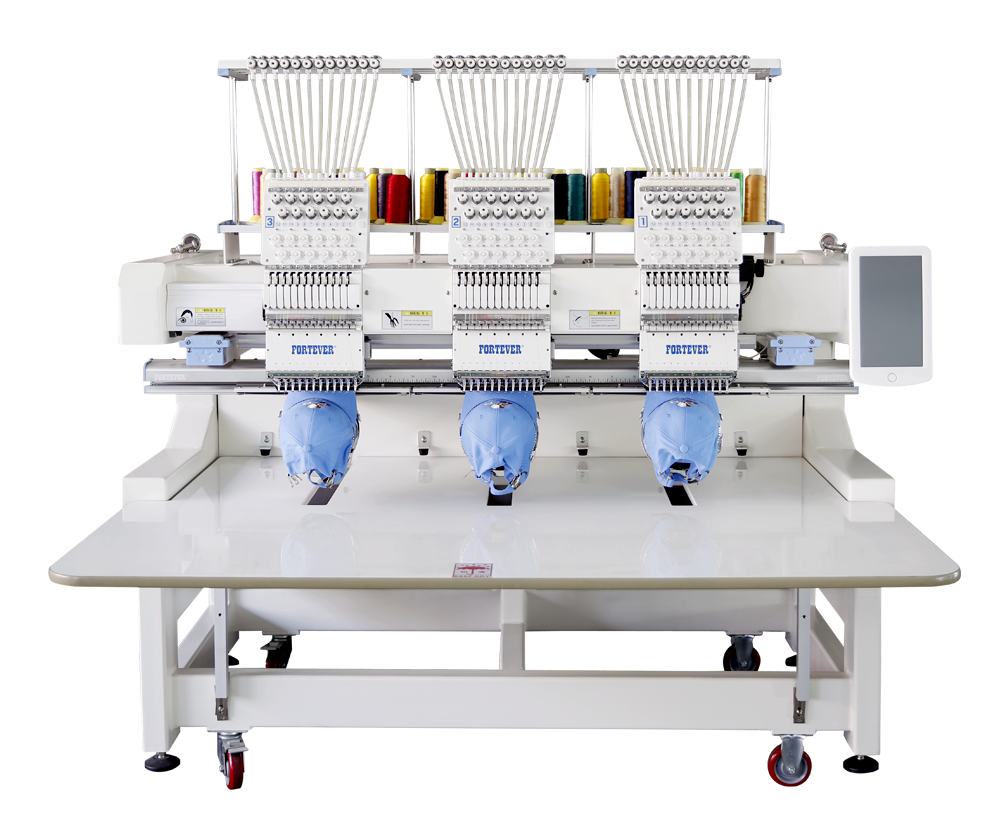Fortever FT-1503HC to hafciarka 3-głowicowa o polu haftu 400x500mm. Urządzenie jest bogato i uniwersalnie wyposażone, oferując możliwość haftu zarówno na wykrojach jak i czapkach lub innych wyrobach gotowych. Ta przemysłowa hafciarka wielogłowicowa może pracować na stosunkowo niewielkiej przestrzeni, ponieważ szerokość hafciarki to tylko 170 cm.
